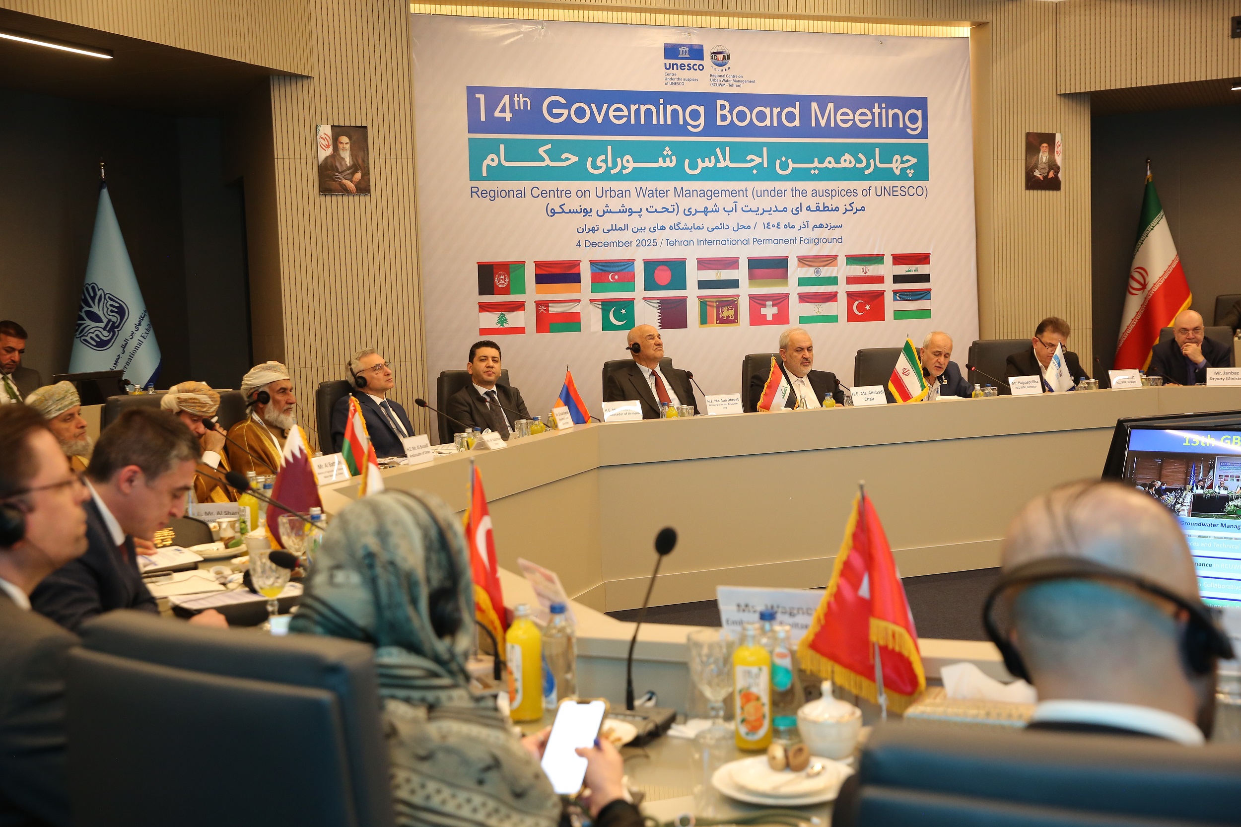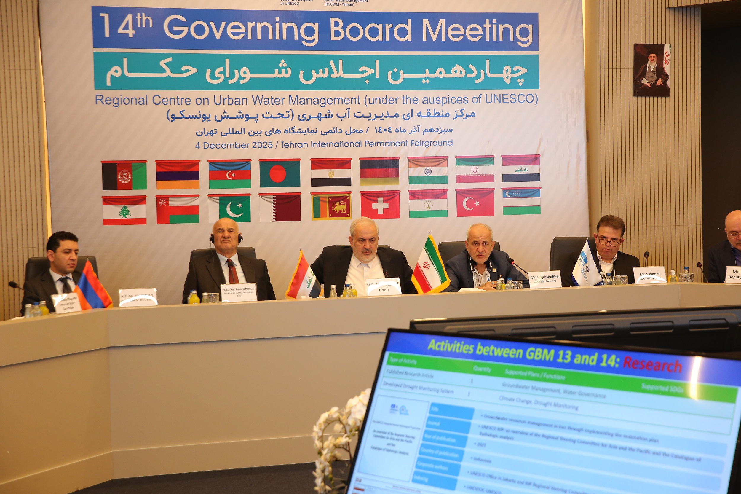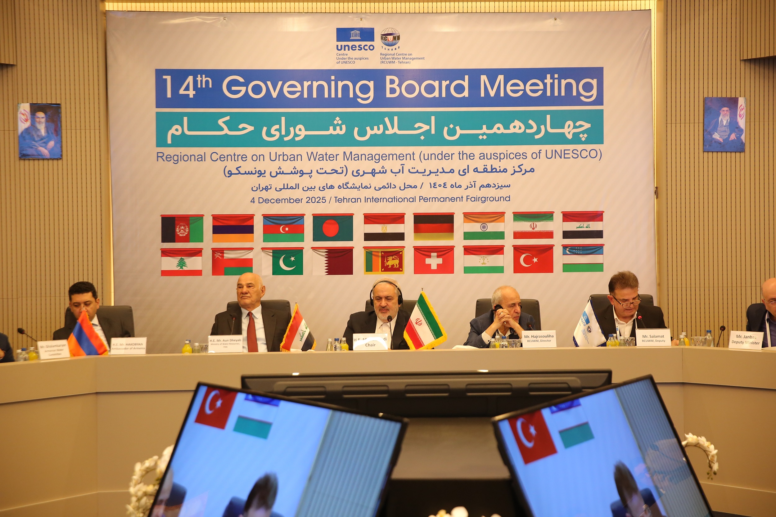 The Fourteenth Governing Board Meeting (GBM-14) of the Regional Centre on Urban Water Management – under the auspices of UNESCO (RCUWM-Tehran) was held on 4 December 2025, from 9:00 to 11:30, at Isfahan Hall of the Tehran International Permanent Fairground, Tehran, Iran, with participation of 10 member states and some international organizations such as UNESCO, WMO and ECO.